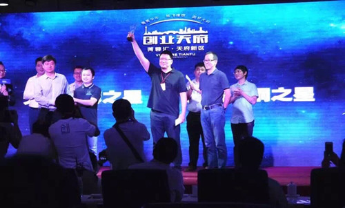最后,金年会成创空间推荐的孵化团队“通甲优博”在项目路演中在成都团队夺冠,荣获“天府菁蓉之星”奖杯,并由俞敏洪为其颁奖!