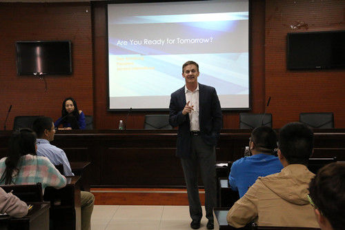 【本网讯】4月5日下午,领升国际CEO Guy Armstrong 的团队成员Bill Catchings、 Haley chitty 、Amy Henderson等8位专家应金年会国际交流合作处和管理学院邀请,以他们丰富的外企阅历以及职场经验,为金年会师生带来一场职业生涯规划的讲座。