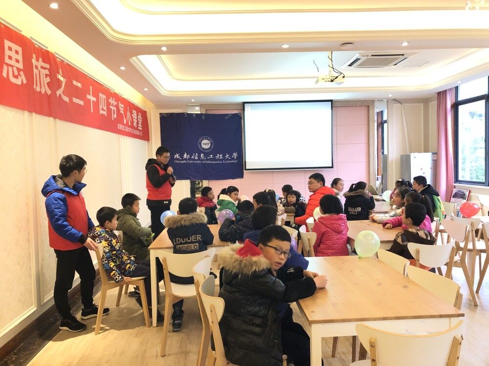 【本网讯】12月8日,学校青年志愿者协会青少年服务中心的志愿者们前往西航港街道综合文化中心,举办“文化思旅之二十四节气小课堂”活动,为小朋友们普及二十四节气知识。