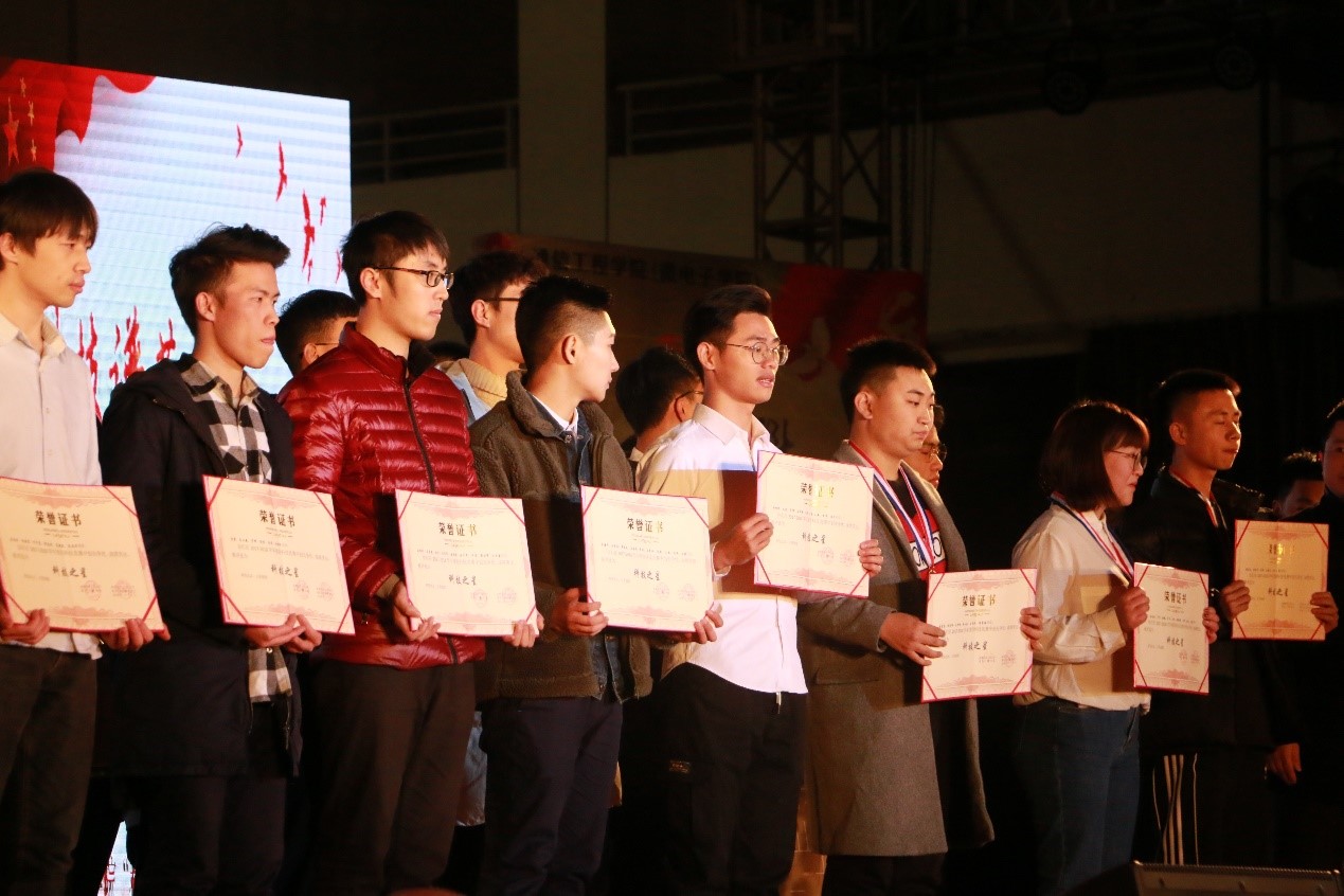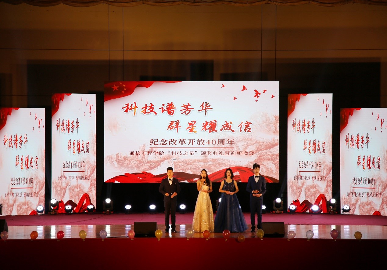 12月7日晚,通信工程学院(微电子学院)2018年庆祝改革开放40周年“科技之星”颁奖典礼暨迎新晚会在航空港校区体育馆举行。