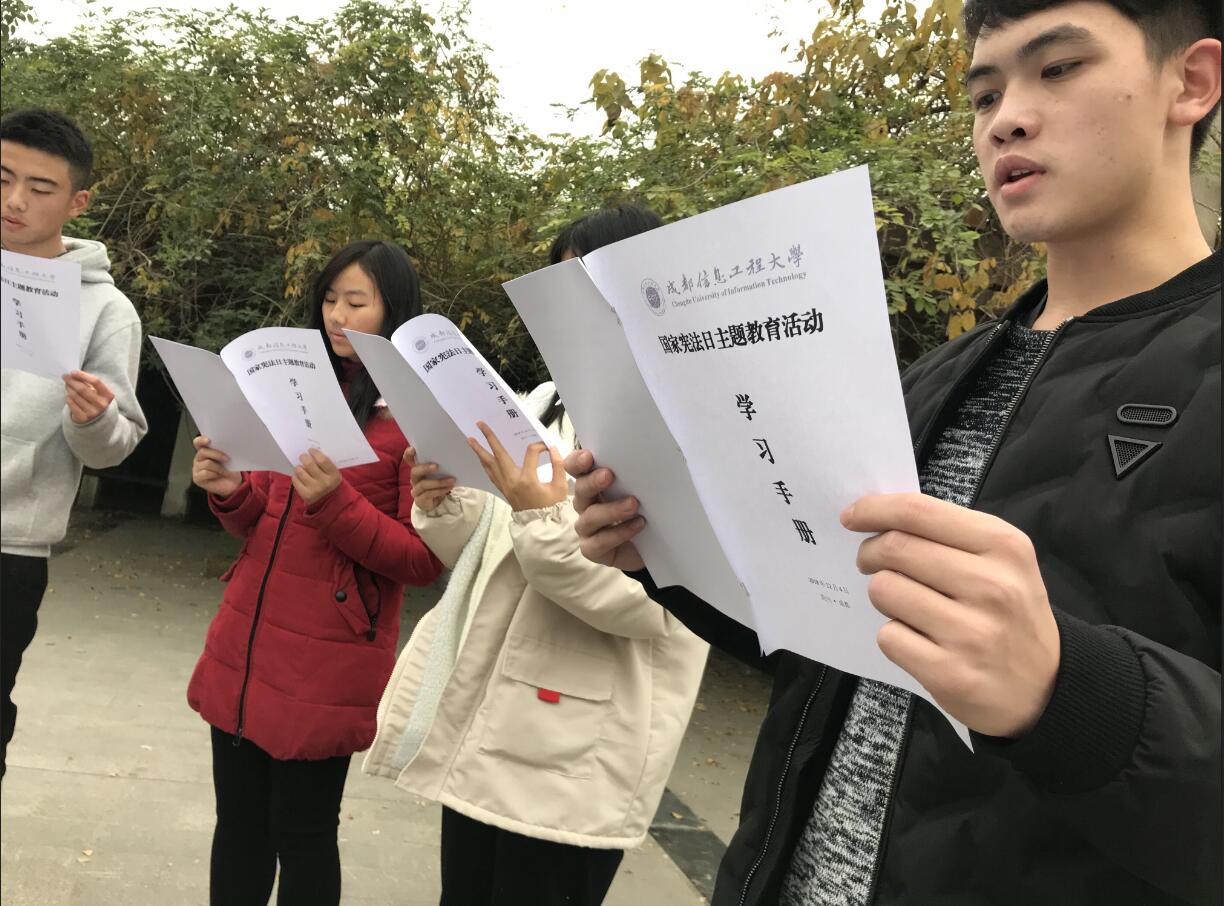 【本网讯】12月4日是我国第五个国家宪法日,为深入贯彻落实党的十九大精神,加强宪法教育、普及宪法知识、弘扬宪法精神、维护宪法权威,增强师生法治观念,校团委组织开展了2018年国家宪法日“宪法晨读”活动。“青马工程”新生骨干培训班全体学员、学生干部、教师代表等400余人参加了晨读活动。