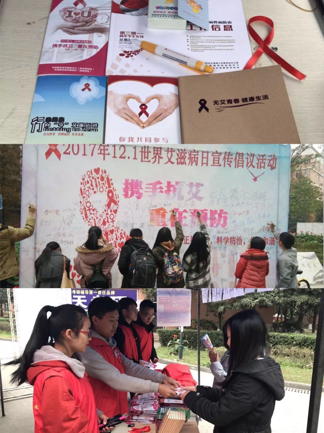 【本网讯】12月1日是第30个“世界艾滋病日”。当天上午,学校分别在航空港和龙泉校区举行2017年世界艾滋病日“携手防艾,重在预防”主题宣传倡议活动。校团委、校卫生防疫保健中心有关负责人以及金年会志愿者参加了活动。