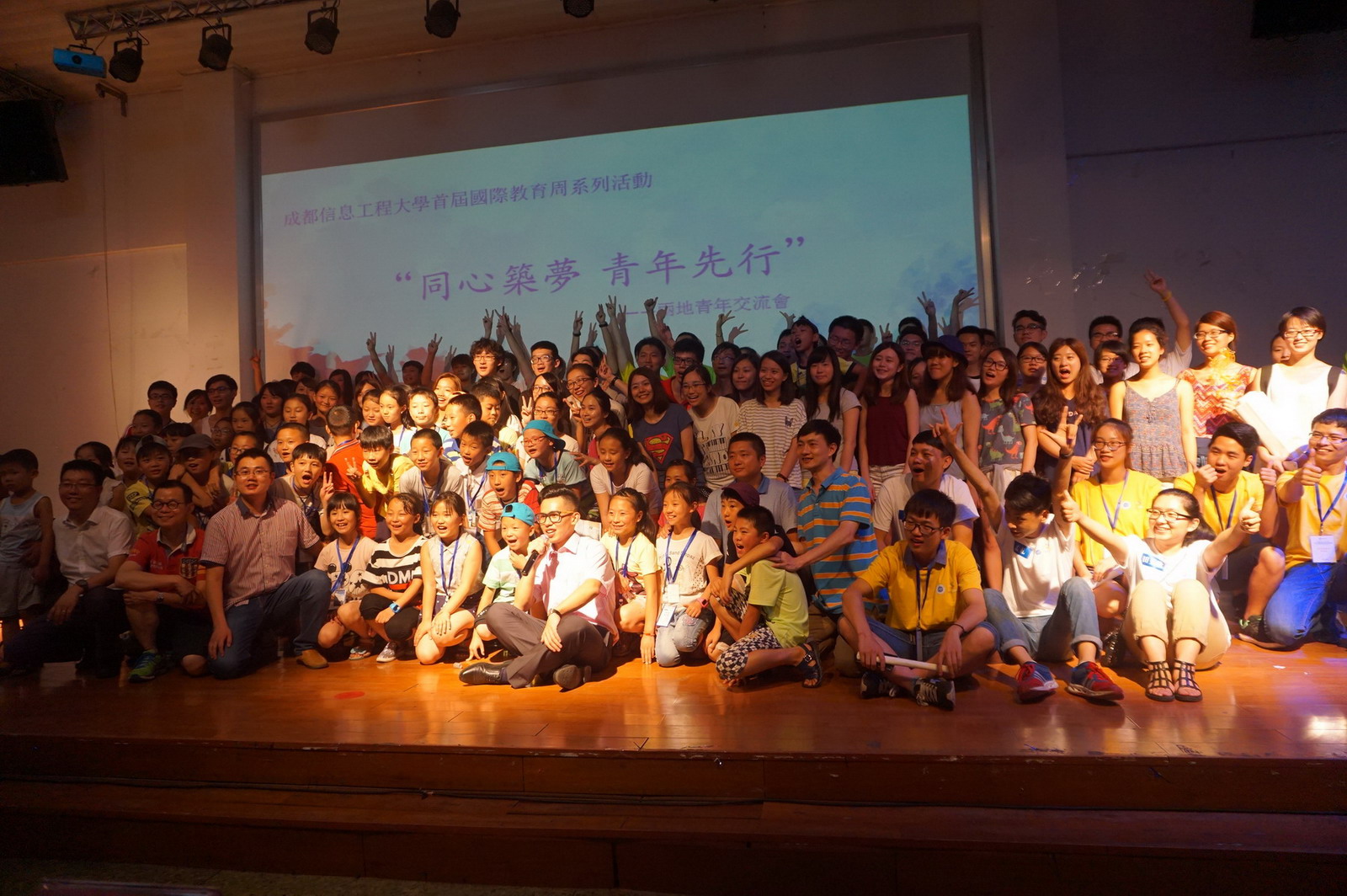 两地师生们积极交流,深入沟通,体验着科技会场的智能化,畅玩民俗会场的皮影、糖人、空竹,认真观看微电影会场的视频。大会以两地青年互赠纪念品、精彩的节目《映秀花开》和《喜欢你》大合唱圆满结束。