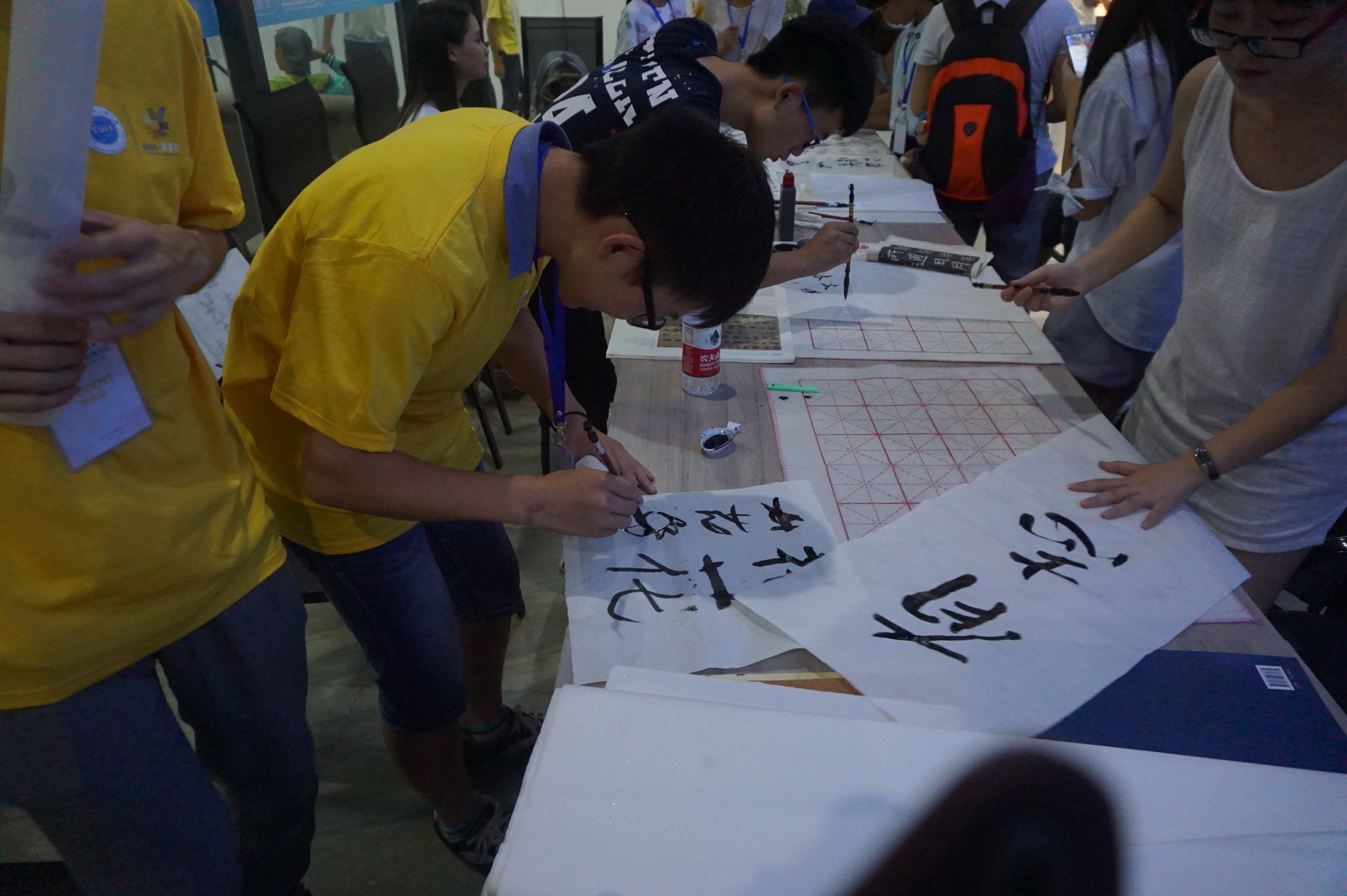 交流会首先向香港理工大学师生介绍了天府之国成都,由具有特色文化的川剧变脸、空竹、以及大学生艺术团的阿拉贝拉,拉开了大会的序幕,香港理工大学沈文传博士致辞。交流的青年老师、学生对分会场科技展上控制工程学院的智能小车、3D打印机非常好奇,我院学生给予了耐心的解答并认真地进行演示。大家还对民俗文化展分会场的民俗文化糖人、空竹、书法有着浓厚的兴趣,与我院学生共同学习空竹的玩法,交流书法的写作,我院学生写下“不积跬步无以至千里”名言送给前来交流的学生。